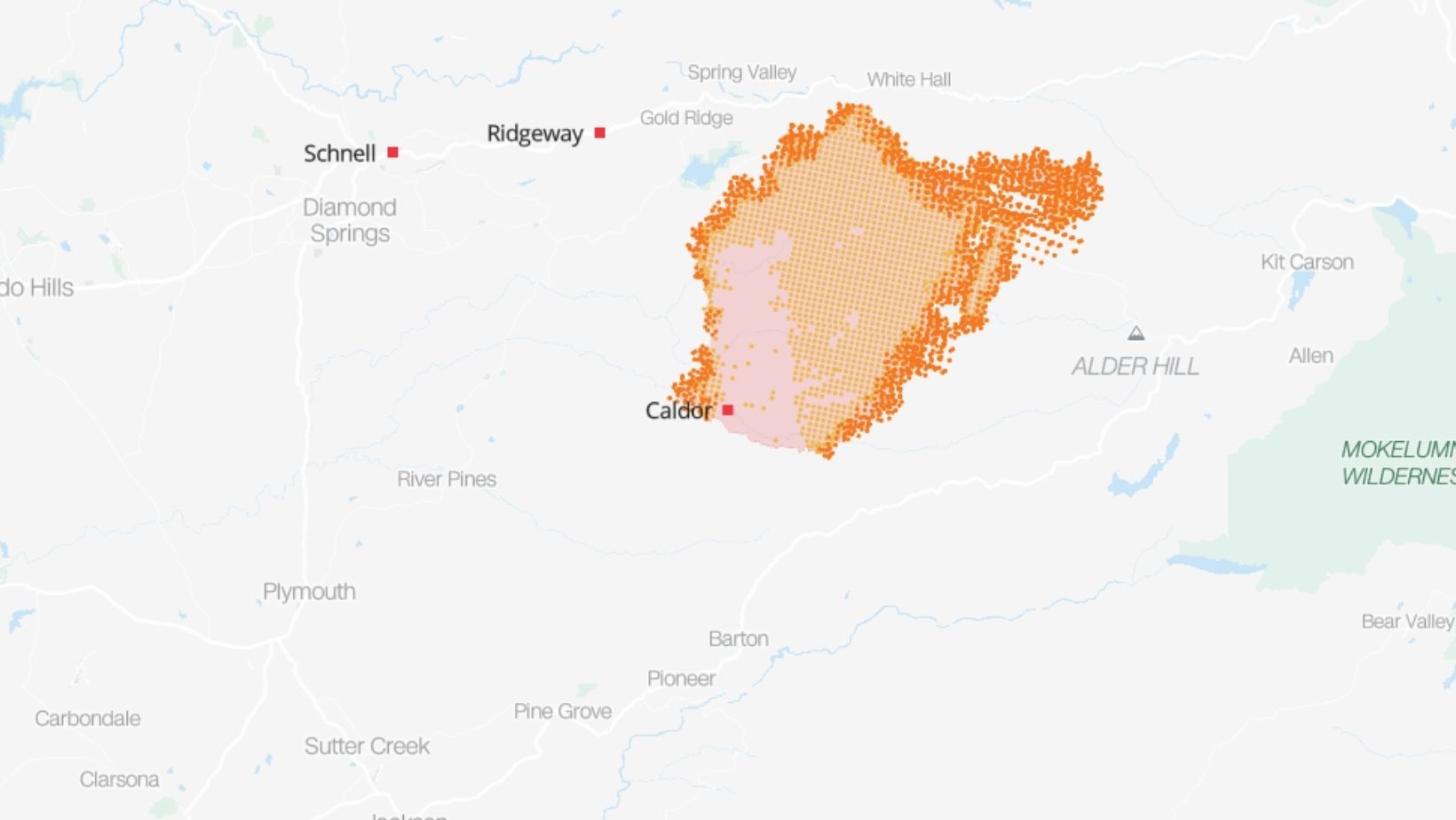 According to Cal Fire, it was fueled by wind and dry conditions and has caused the fire burning in El Dorado County to swell to 62,586 acres and is 0% contained.