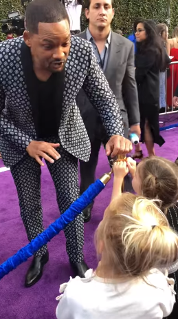 This amazing moment happened at the red carpet of Aladdin. Two little twin girls of 4 years of age, came to him and he stayed in character saying he is not allowed to show his magic in public. But not to disappoint them he asked them to come with him and meet the princess, Jasmin.