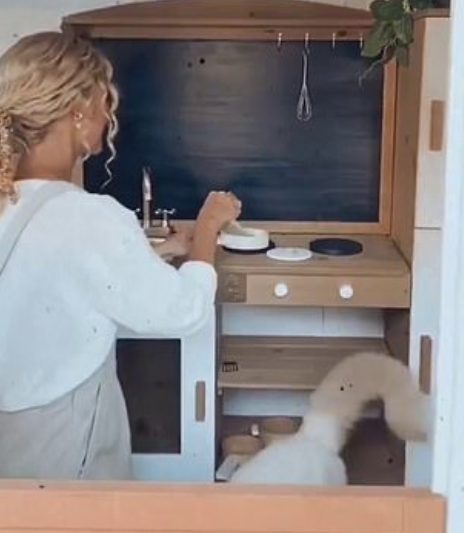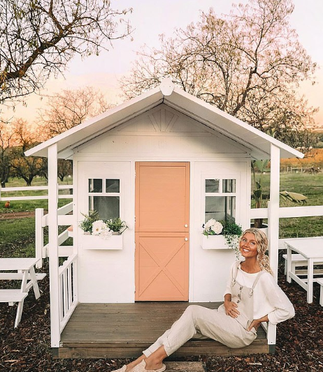 The couple posted the picture of their peach painted cubby house for the child on Instagram. They also posted the videos of timber cutting and assembling the roof and walls.