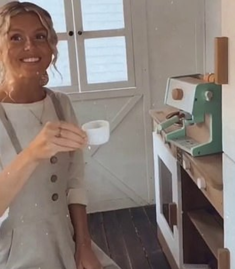 Elise added, for the time being, it is keeping her entertained, and it will do the same for her baby. The cubby house also has a farm gate style entrance and vegetable garden to the lookout.