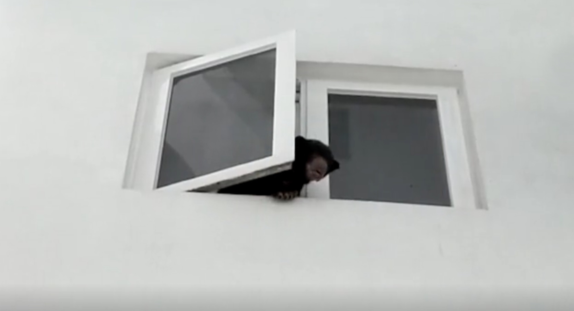 Her neighbors had heard the sound of the bear cub and someone was even able to capture a photo of the animal sticking out its head from her apartment window.