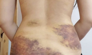 She thought he would stop if time passes. However, the assault got worse, and eventually, her thin body was slowly covered with swelling and bruises.