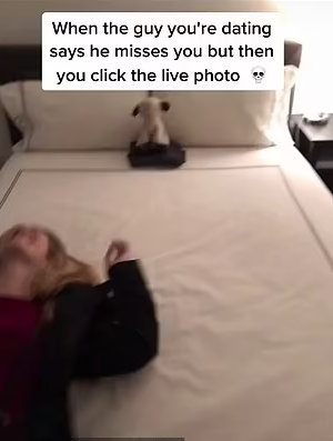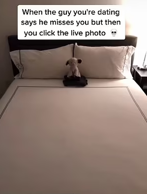 The picture of a bed with a stuffed toy seemed innocent until she clicked the live version of the photo. Thanks, iPhone!