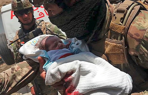 Security forces carried babies from the unit, some of them wrapped in blood-soaked cloth.