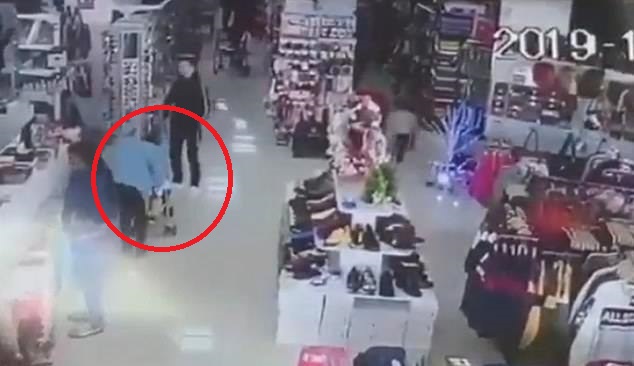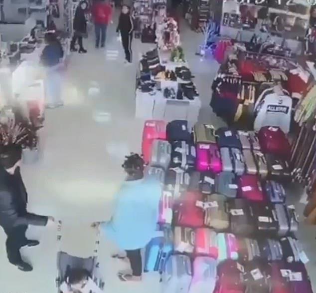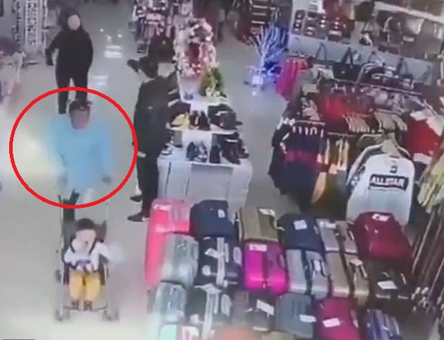 The CCTV footage showed the woman walking out of the store while pushing the stroller when the store worker stopped her.