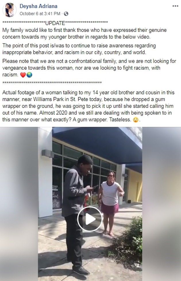 “I thought she was going to attack us. The lady was telling me, ‘Just pick it up,’ real loud and just yelling and everything, crazy,” the 14-year-old said in an interview with WTSP.