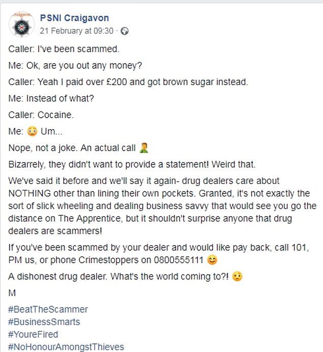 The post on the Facebook page of Police Service of Northern Ireland, Craigavon described the exchange between the officer and the disgruntled caller.