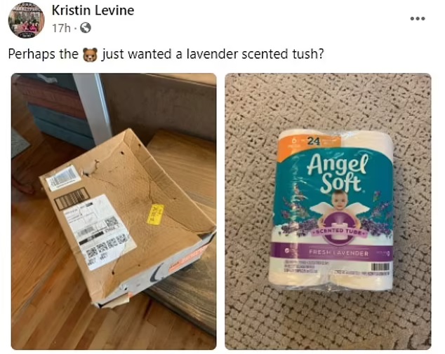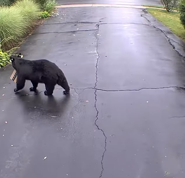 While Kristin admitted locals are already used to seeing bears in the area, she never expected one to go so near her house and steal a package in the process.