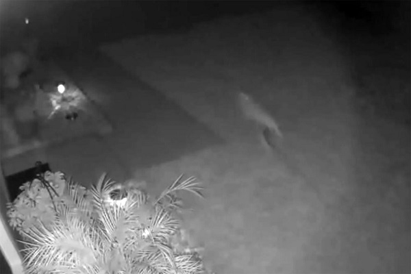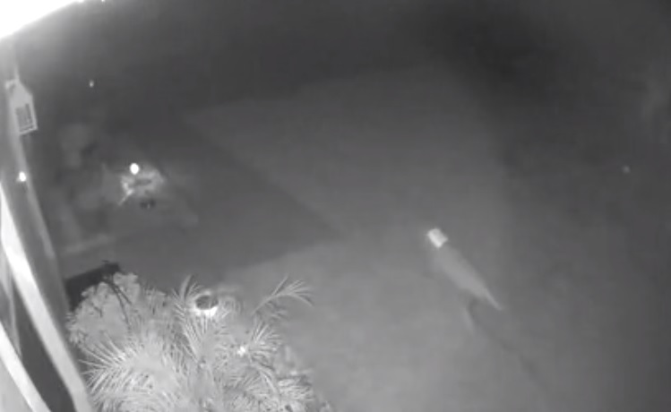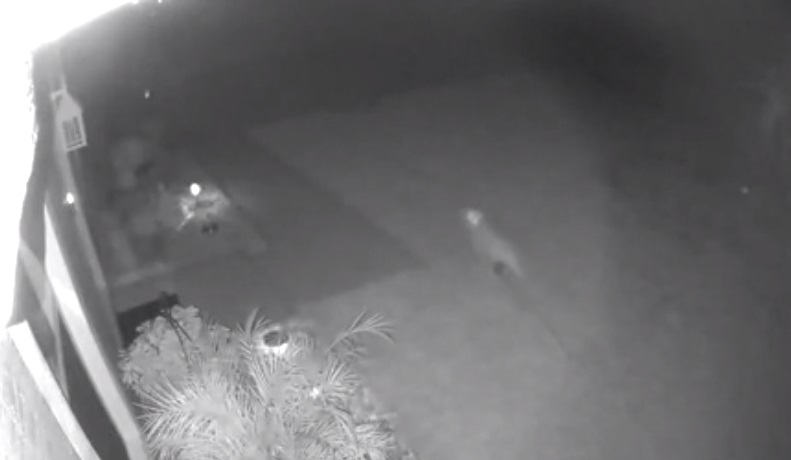 As Cristina Ryan from Palm Coast explained, she caught a dinosaur-like creature on a security camera while the animal was making its way past her home.