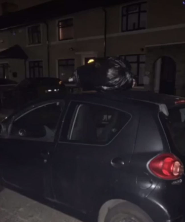They placed the rubbish bag on top of the woman’s car to teach her a lesson.