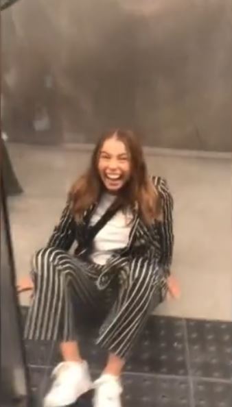 The entrance wasn’t closed, so this made her fall out of that carriage and right on the platform. Fortunately, she is safe, at least that’s what you can get from her face on the video where she is seen laughing after falling on the platform.