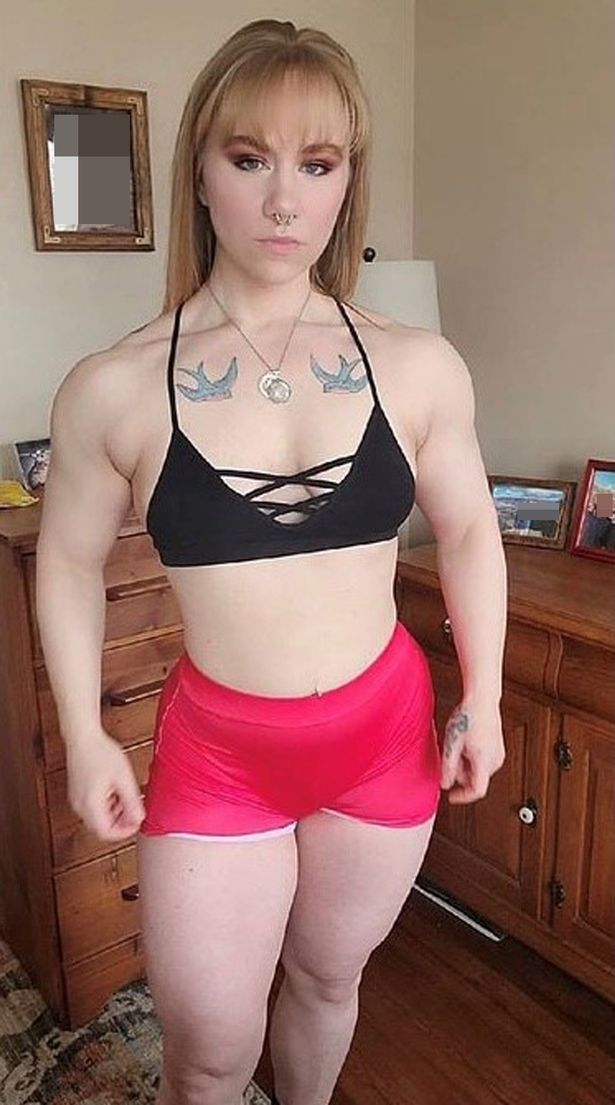 34-year-old Sara Holda from Tennessee showed off her muscles and “vampy, high cheekbone look” accentuated by cheek fillers.