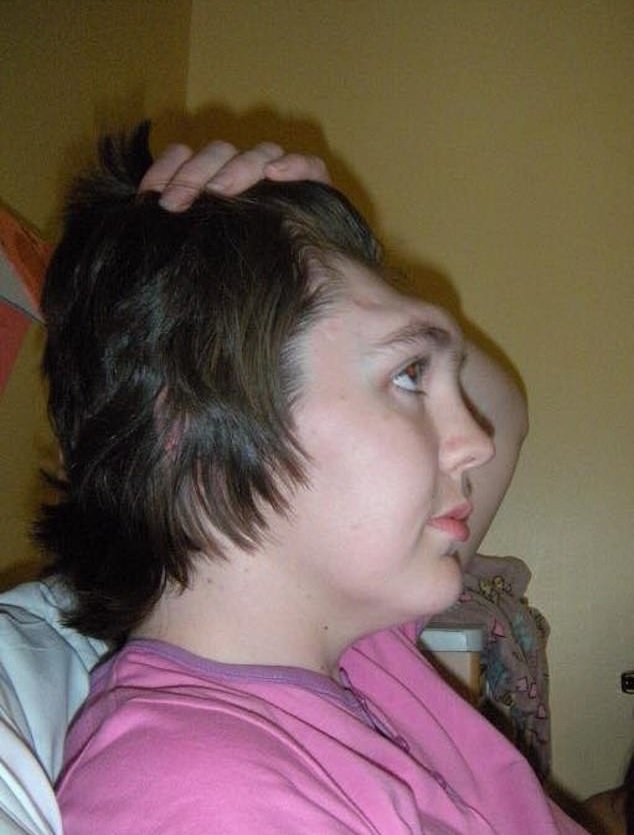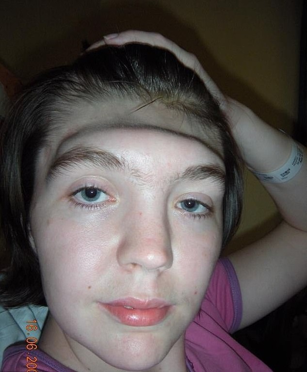 A woman has warned car passengers about the dangers of resting your feet on a car dash after a freak accident that caused her to end up with no forehead.