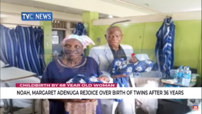 A 68-year-old woman and her 70-year-old husband from Nigeria are over the moon after she gave birth to healthy twins.