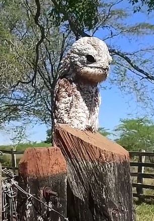 While the woman initially believed that the animal was a part of the wooden post, she was left frightened after the bird moved its head and opened its giant bill.