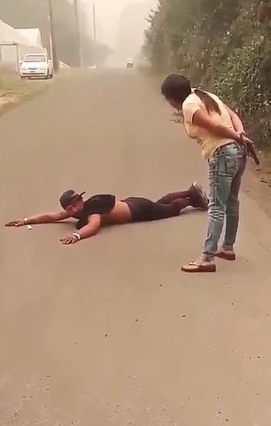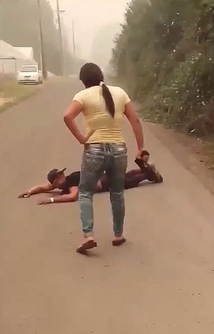 In the video posted on Kat Cast’s Facebook, she can be seen driving up to the suspect as someone in her car films the worrying situation.