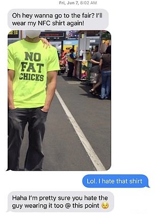 “He was already annoying me because he was texting me so much and harassing me about ghosting him even though I never ghosted or rejected him, so when he sent the picture of that shirt I was already frustrated.