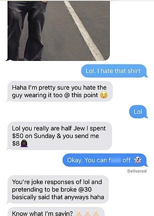 “I told him I hated the shirt. I just think he’s really insecure so the second he saw something negative – that was the first time I texted something negative – he just lashed out immediately.