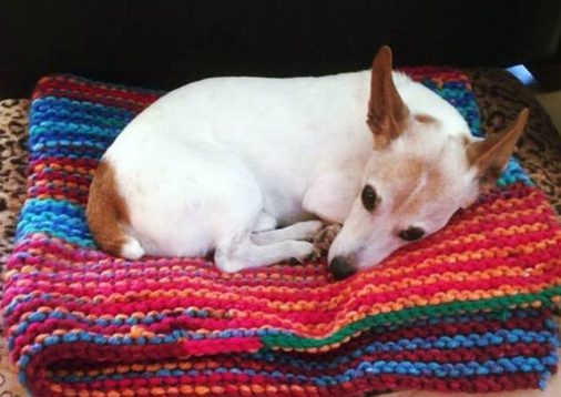She claims that it takes three days to knit a dog blanket for her and only one day to knit a dog coat.