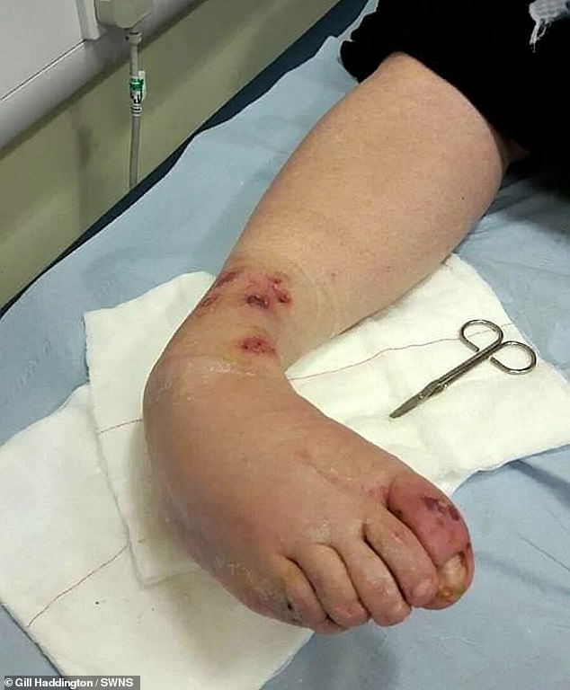 However, her condition got worse as her right foot swelled to twice its normal size and the toes curled.