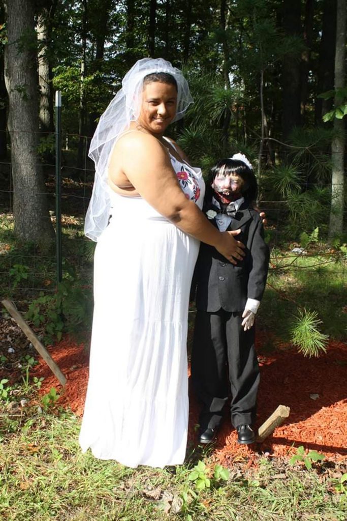 A 20-year-old woman married to a zombie doll in an ’emotional and intimate’ seven-year relationship and says they even consummated their marriage.