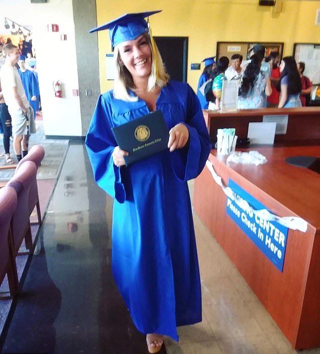 Her post reads: “My name is Jamee and I am a recovering heroin and meth addict. These pictures are 2 years apart. The better looking version of me being just a few months ago when I got my GED!”