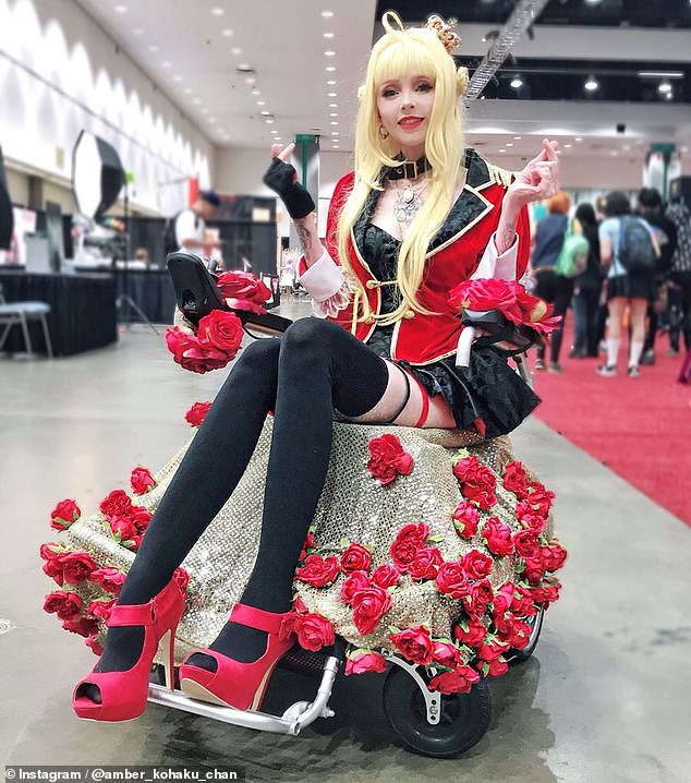 With her wheelchair and shiny outfits, Amber is very popular among her thousands of followers.