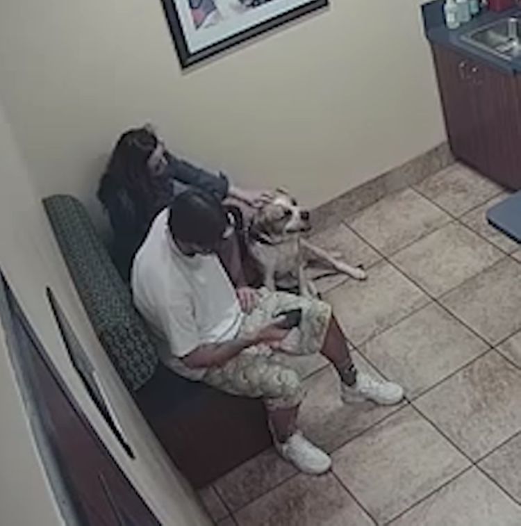 Carolyn was wearing sunglasses because of her black eye. When they arrived, she was able to give a secret note to the vet.