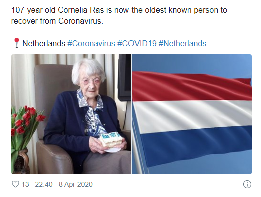 One internet user commented: “Those Dutch women, they’re made of strong stuff! Good luck to her for continuing good health. It’s interesting that quite a few people in this extreme age bracket have survived C-19.”