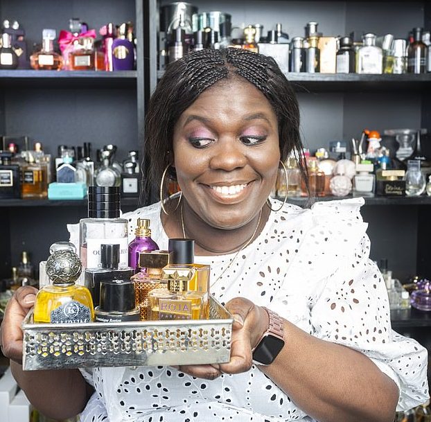 The IT worker revealed how she mixes different fragrances to create her own unique scents and can spend up to £4,000($5200) on perfume in a month. Shade who is married to Bereton Selema, 38, said: ‘When I was seven my family moved from Nigeria to Brunei where I went to an English/Dutch school.