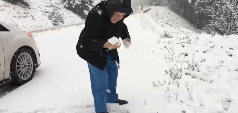 Armand posted the video on his facebook account and his mother looked really excited and thrilled while playing with the snow.