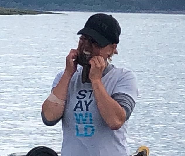Without a second doubt, she placed the small animal on her face and smiled before asking a fellow fisherman to take a picture of her.