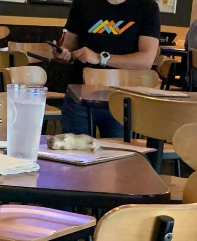 A woman was left disgusted after a large rodent fell from the ceiling and slammed directly onto her menu as she was selecting her meal while enjoying a sports game.