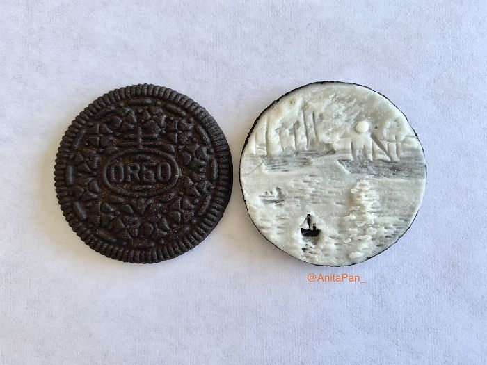 Anita recreated famous paintings on Oreos – yes, you heard that right. She created tiny drawings on Oreos’ stuffing without missing any detail.