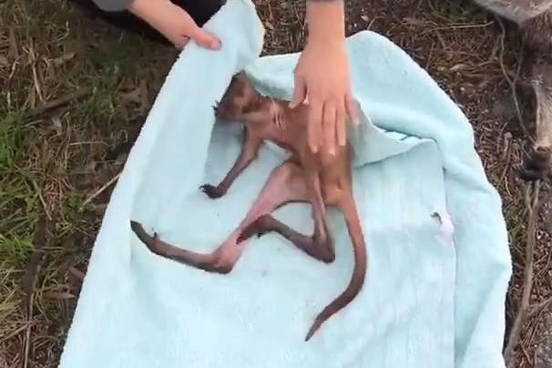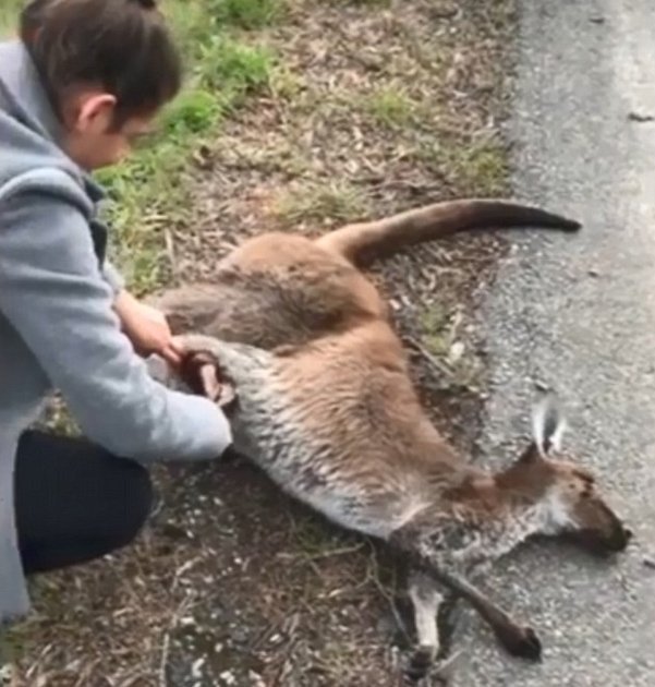 She got both her hands in there and put it around the whole joey. The Joey is safe and healthy now and was taken to a facility that specializes in looking after kangaroos in Strathalbyn.