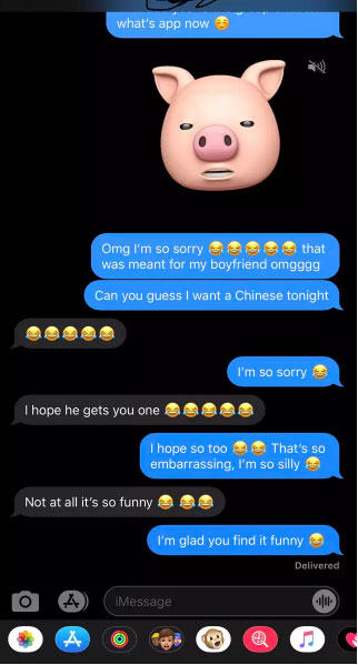 Issie Carmody was sending the pig animoji to her boyfriend, but mistakenly it went straight to her new boss. The weirdest thing is she just met him two days ago.