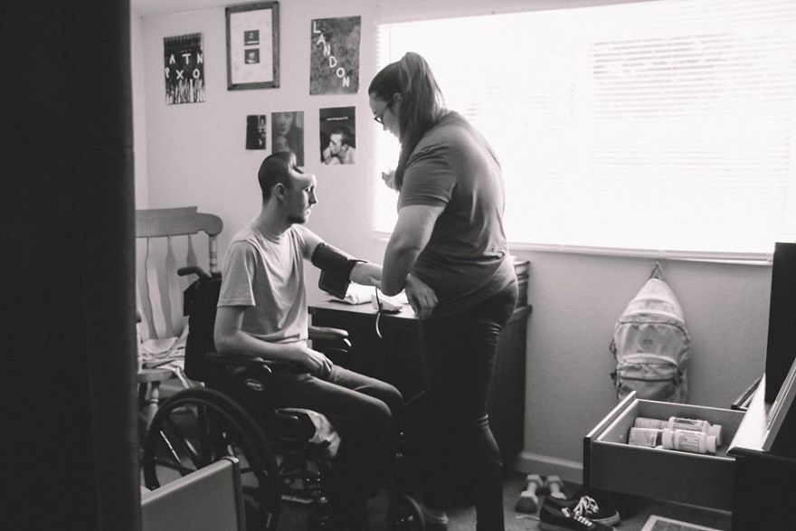 I wake up every day to take care of our beautiful little boy and my husband. I prepare the meals, do physical therapy, speech therapy, and occupational therapy. I help him with personal hygiene. I help him walk. I help him with every aspect of his life.