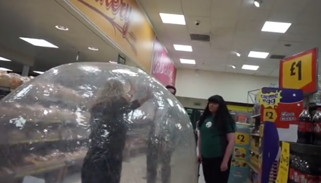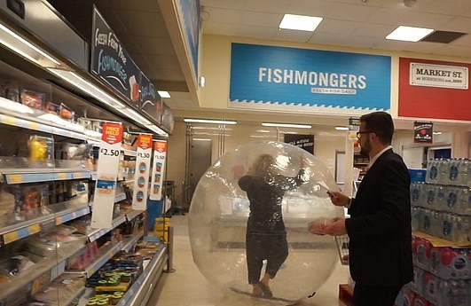 The incident occurred in Kent, the UK, where the anonymous shopper rolled into a Morrisons supermarket using a zorb ball.
