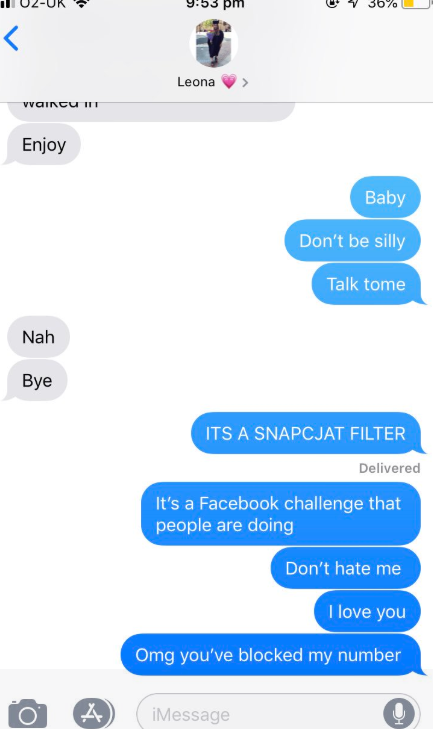 Sasha tried to woo her girlfriend multiple times but Leona blocked her. This serves as a warning not to use Snapchat filters for pranks!