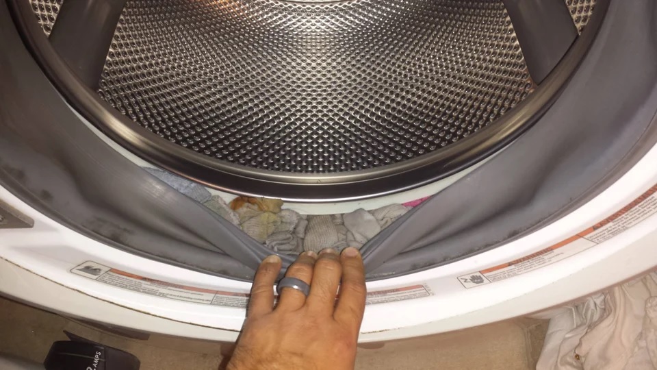 After inspecting her washing machine and its rubber gasket, one homeowner found dozens of socks hidden in the tight gap between the drum and frame of the machine.