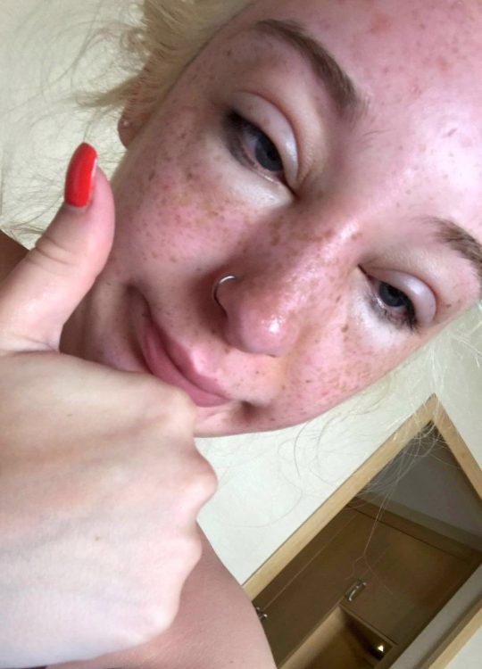 “I had to stay under the umbrella, or indoors, for the treatment to work. I’d be sitting around the pool and my boyfriend would be like – ‘Bethany, please put your glasses back on! People are staring!’”