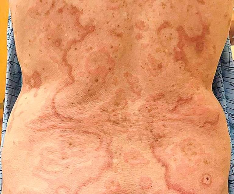 Dr. Prouty, one of the dermatologists involved with treating her, said the woman had been initially treated with antihistamines. However, the patches developed into scaly plaques.