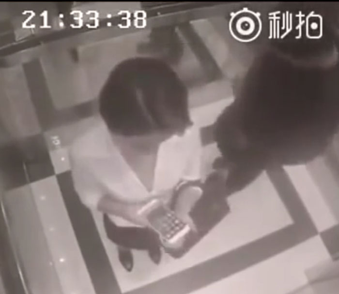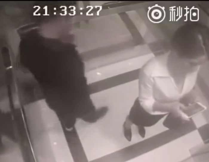 Video footage has emerged that shows a woman and a man in an elevator at late night in China.