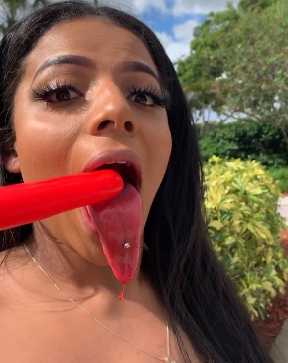 Typically, the tongue model records herself licking various types of foods or simply shares pictures of herself sticking out her tongue.