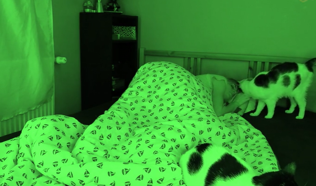 So she got a night vision camera, put all the cats in her room and went to bed that day.