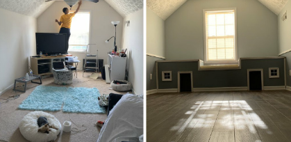 The woman named Kennedy decided to give her extra room a turn and she converted it into a house for her dogs.