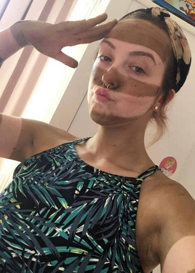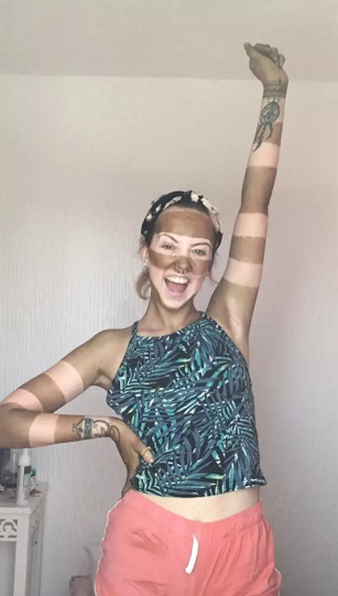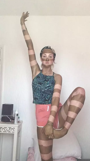 Bored during quarantine at home, this 21-year-old girl, who lives in South Kirkby, Pontefract, West Yorkshire, transformed her body. She taped herself in strips and then she covered her body with a lot of fake tans. Now she looks nothing less than a zebra.