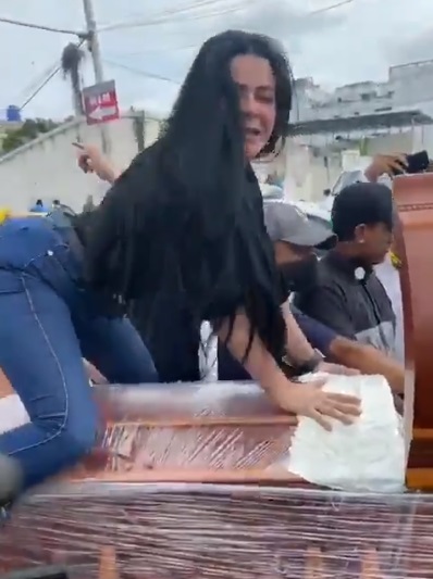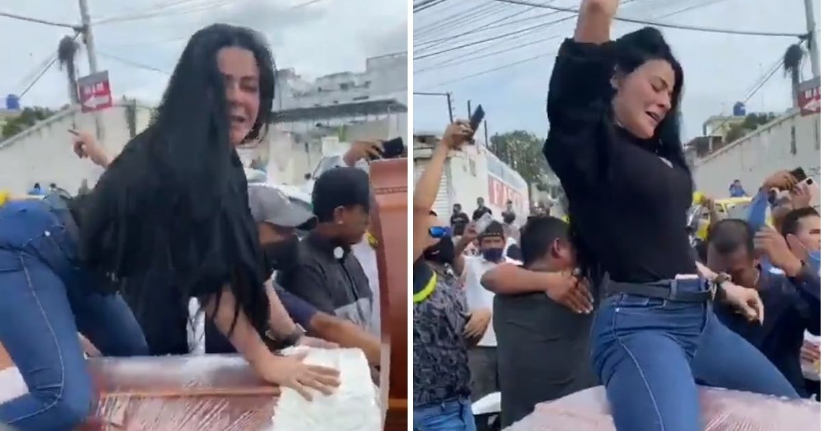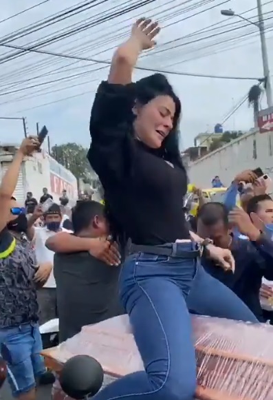 A woman was caught on camera twerking on top of a coffin during a funeral procession that took place in Manabí, Ecuador.