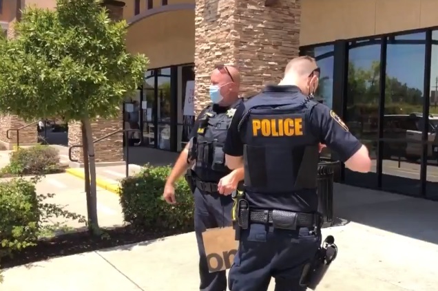 According to the 911 call secured by CBS Sacramento, the dispatcher informed the officers responding to the report that three shoppers refused to leave the store after being asked to depart for “not wearing a mask.”