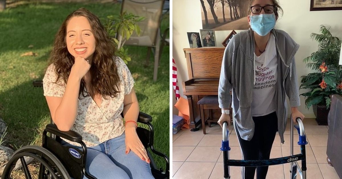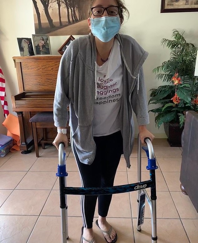 Despite being Covid-free for several months, the 24-year-old still relies on her wheelchair to get around since she is not able to stand or walk for long.